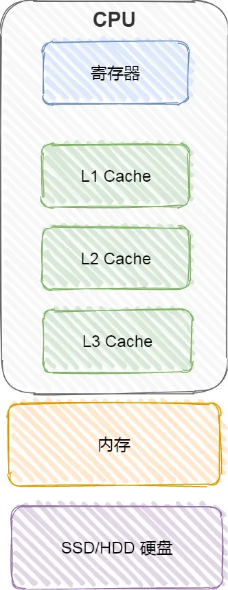 就是这么一个小小的场景,已经把计算机的存储结构基本都涵盖了。