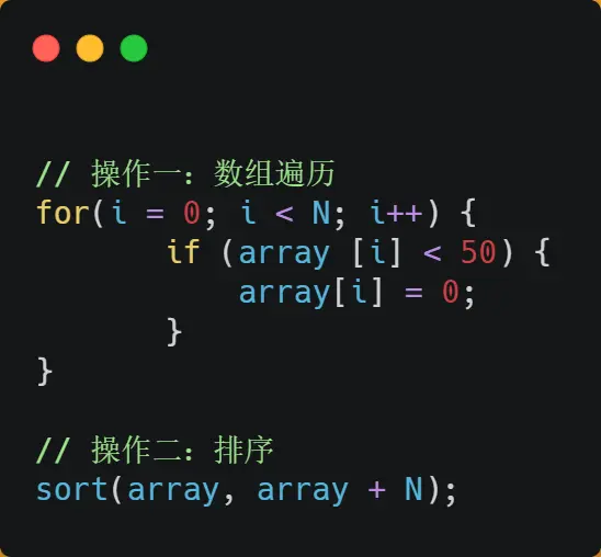 • 对于指令缓存,有规律的条件分支语句能够让 CPU 的分支预测器发挥作用,进一步提高执行的效率;