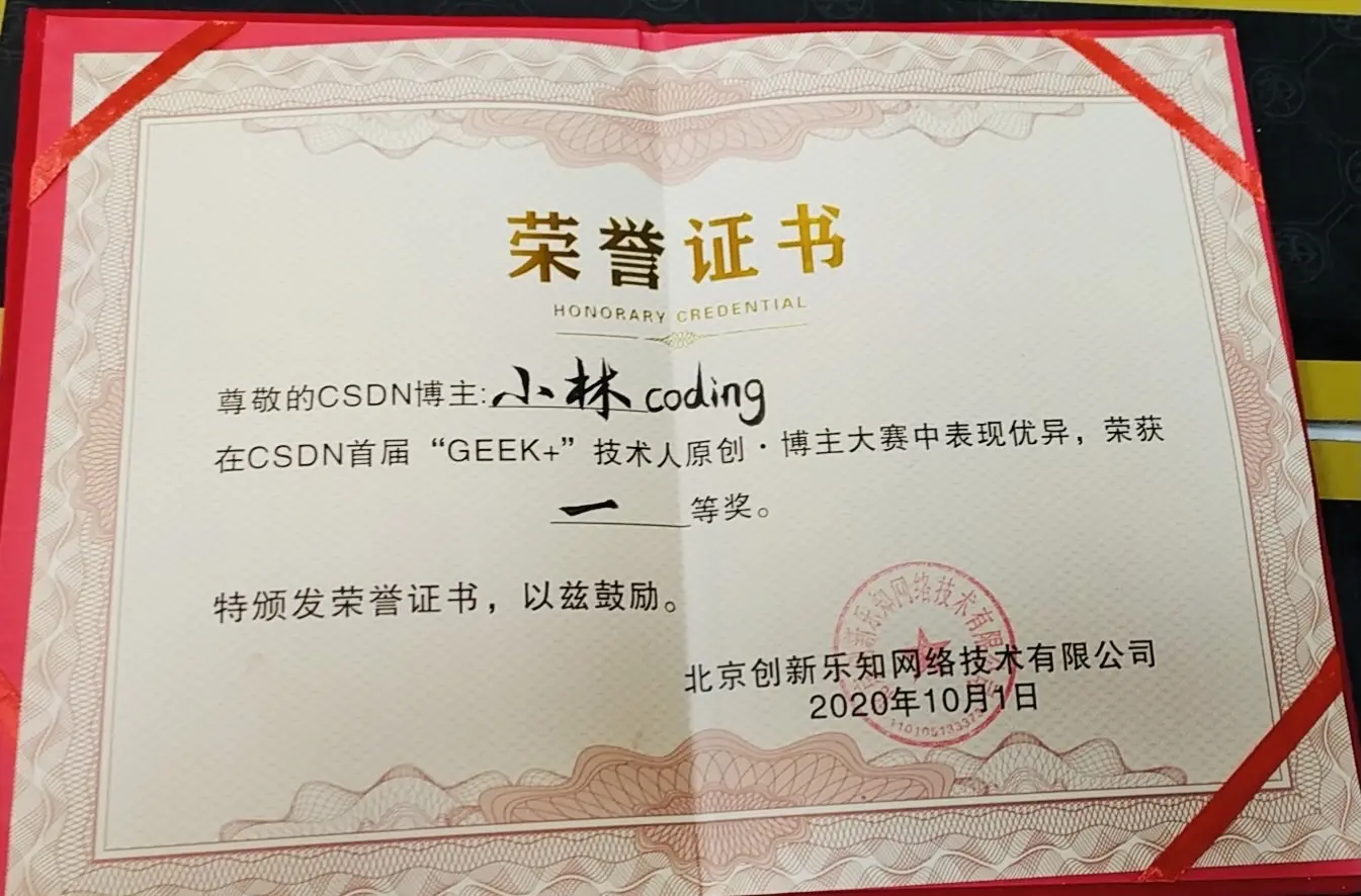 分享个喜事,小林平日里忙着输出文章,今天收到一份特别的快递,是 CSDN 寄来的奖状。