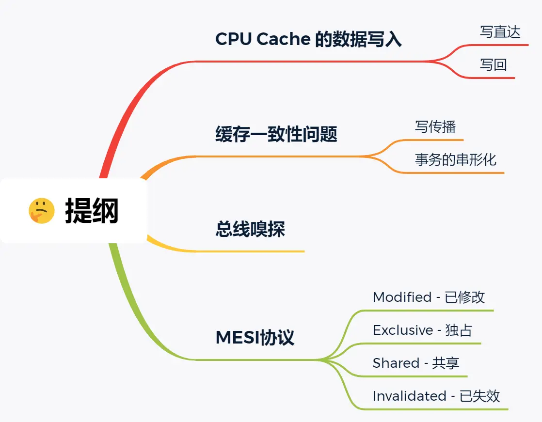 于是,有一个协议基于总线嗅探机制实现了事务串行化,也用状态机机制降低了总线带宽压力,这个协议就是 MESI 协议,这个协议就做到了 CPU 缓存一致性。