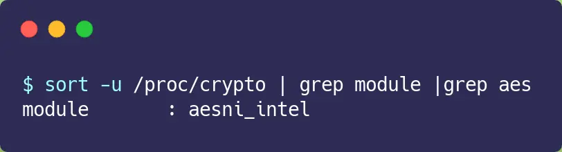 如果你的服务器是 Linux 系统,那么你可以使用下面这行命令查看 CPU 是否支持 AES-NI 指令集: