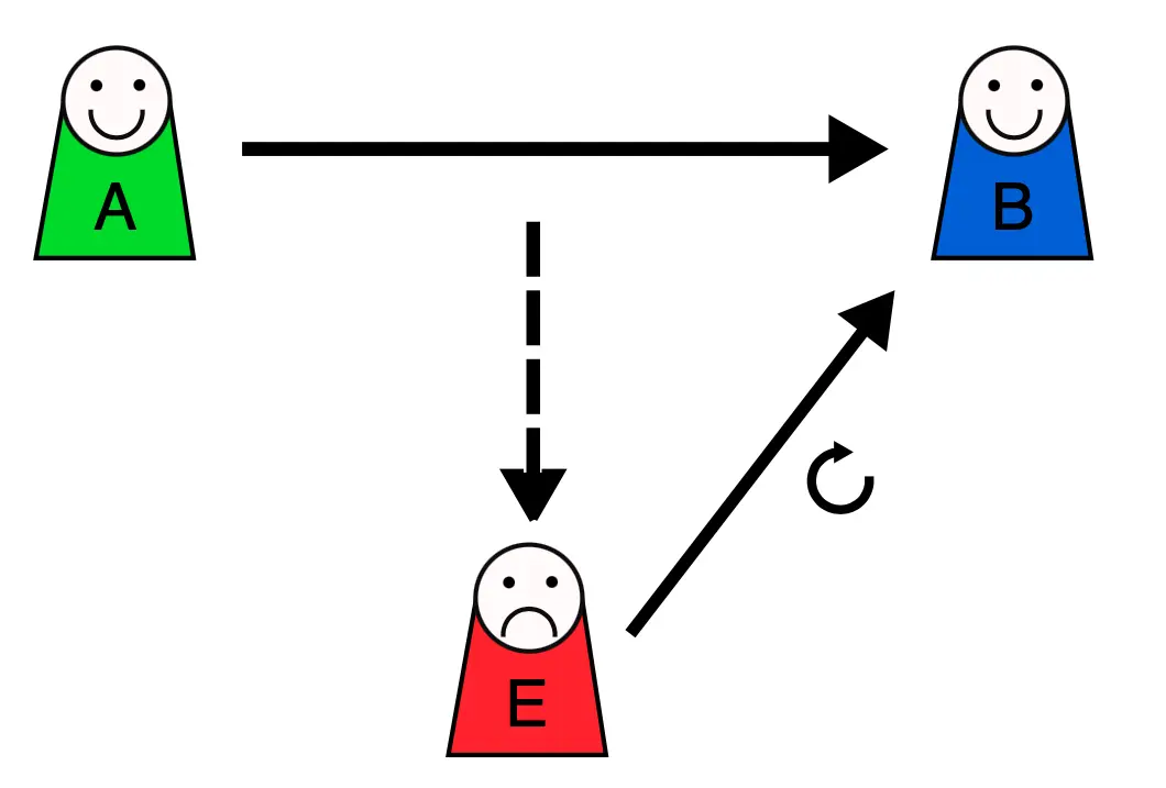 交换结束后,Eve(冒充 Alice )连接到 Bob。当被要求提供身份证明时,Eve 发送从 Bob 接受的最后一个会话中读取的 Alice 的密码(或哈希),从而授予 Eve 访问权限。
