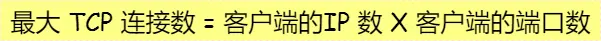 因此,客户端 IP 和端口是可变的,其理论值计算公式如下: