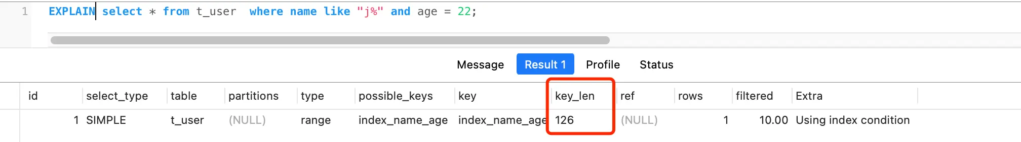 - key_len 表示索引的长度;