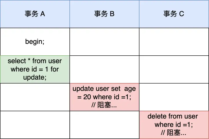 mysql> select * from user where id = 1 for update;