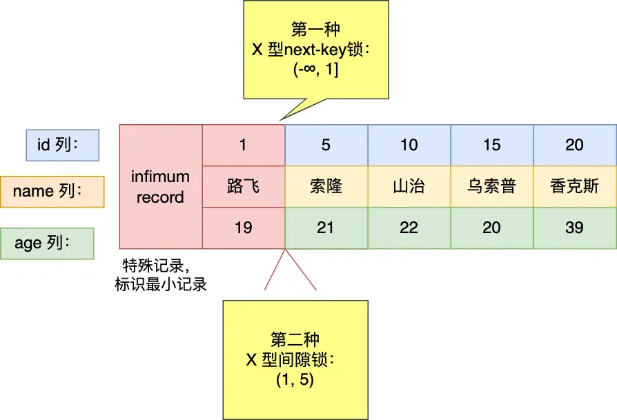- Gap Lock,间隙锁,锁定一个范围,但是不包含记录本身;