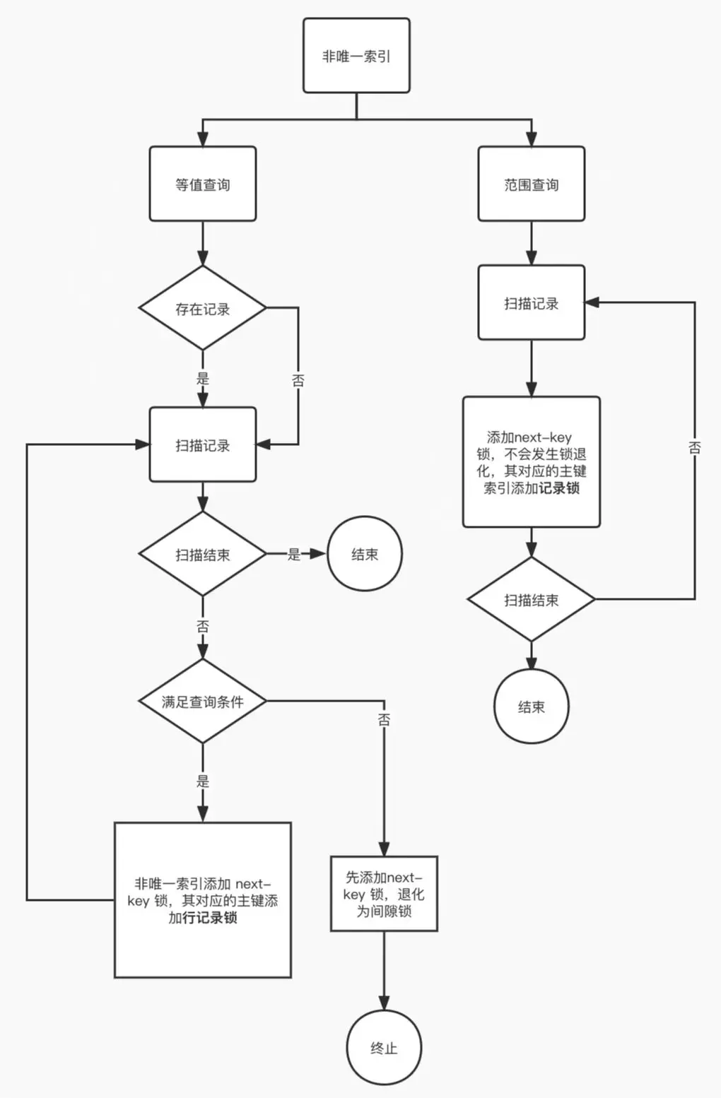 - 非唯一索引范围查询,索引的 next-key lock 不会退化为间隙锁和记录锁。