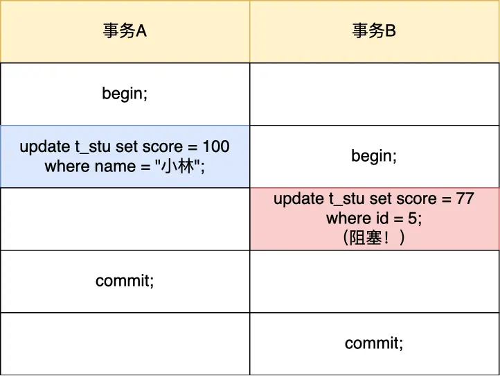 当我们执行 update 语句时,实际上是会对记录加独占锁(X 锁)的,如果其他事务对持有独占锁的记录进行修改时是会被阻塞的。另外,这个锁并不是执行完 update 语句就会释放的,而是会等事务结束时才会释放。