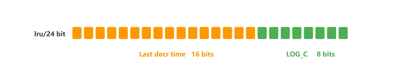• logc 是用来记录 key 的访问频次,它的值越小表示使用频率越低,越容易淘汰,每个新加入的 key 的logc 初始值为 5。