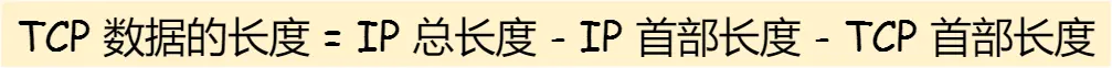 其中 IP 总长度 和 IP 首部长度,在 IP 首部格式是已知的。TCP 首部长度,则是在 TCP 首部格式已知的,所以就可以求得 TCP 数据的长度。